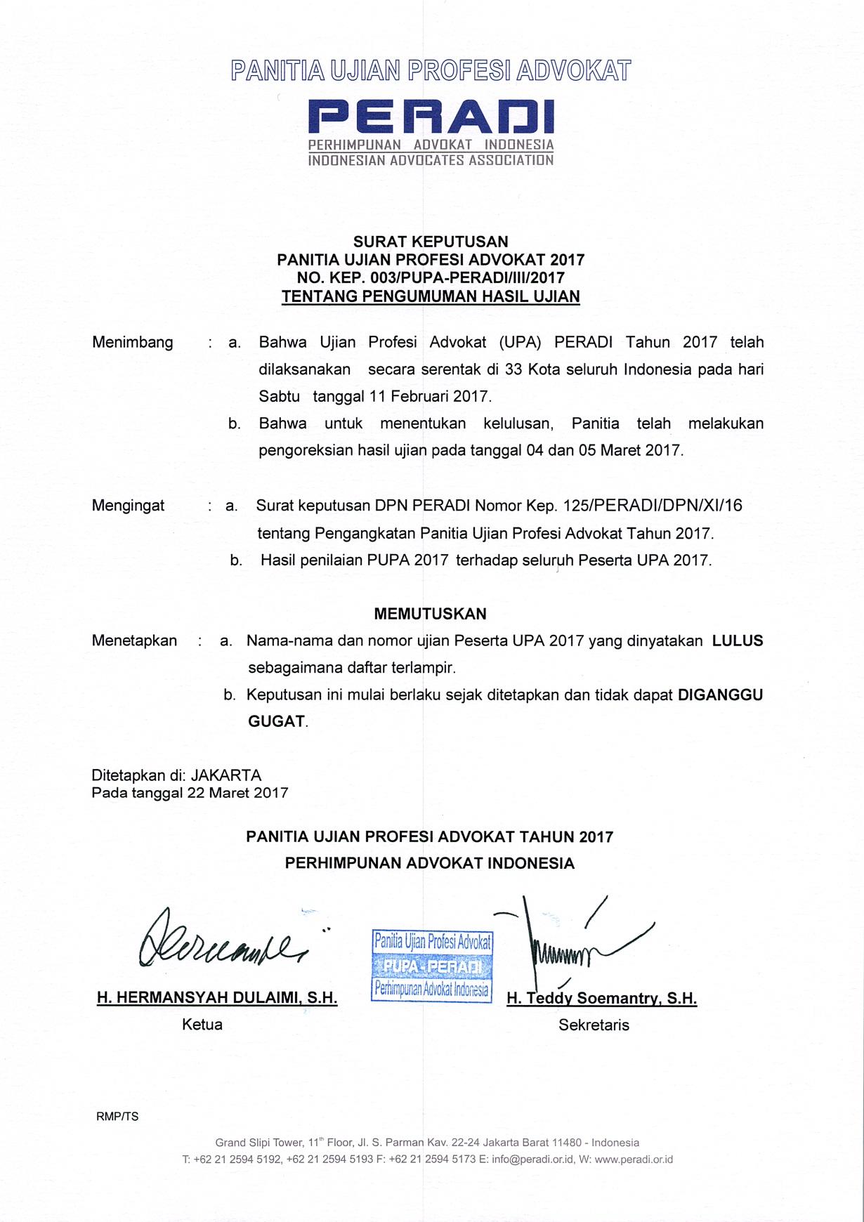 Daftar Nama Peserta Ujian Profesi Advokat Yang Lulus Ujian Profesi Advokat Tahun 2017