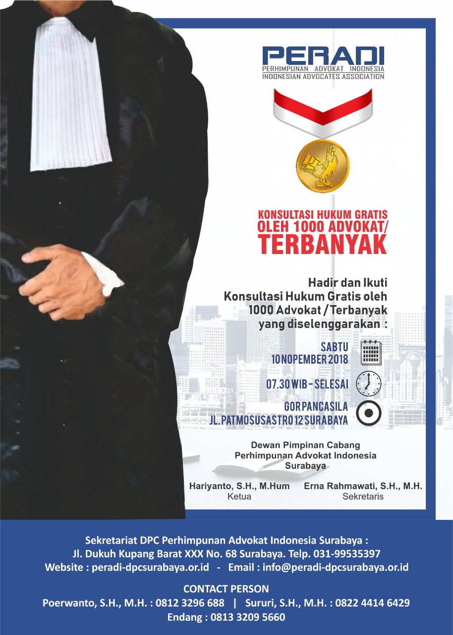 Hadir dan Ikuti Konsultasi Hukum Gratis oleh 1000 Advokat Terbanyak
