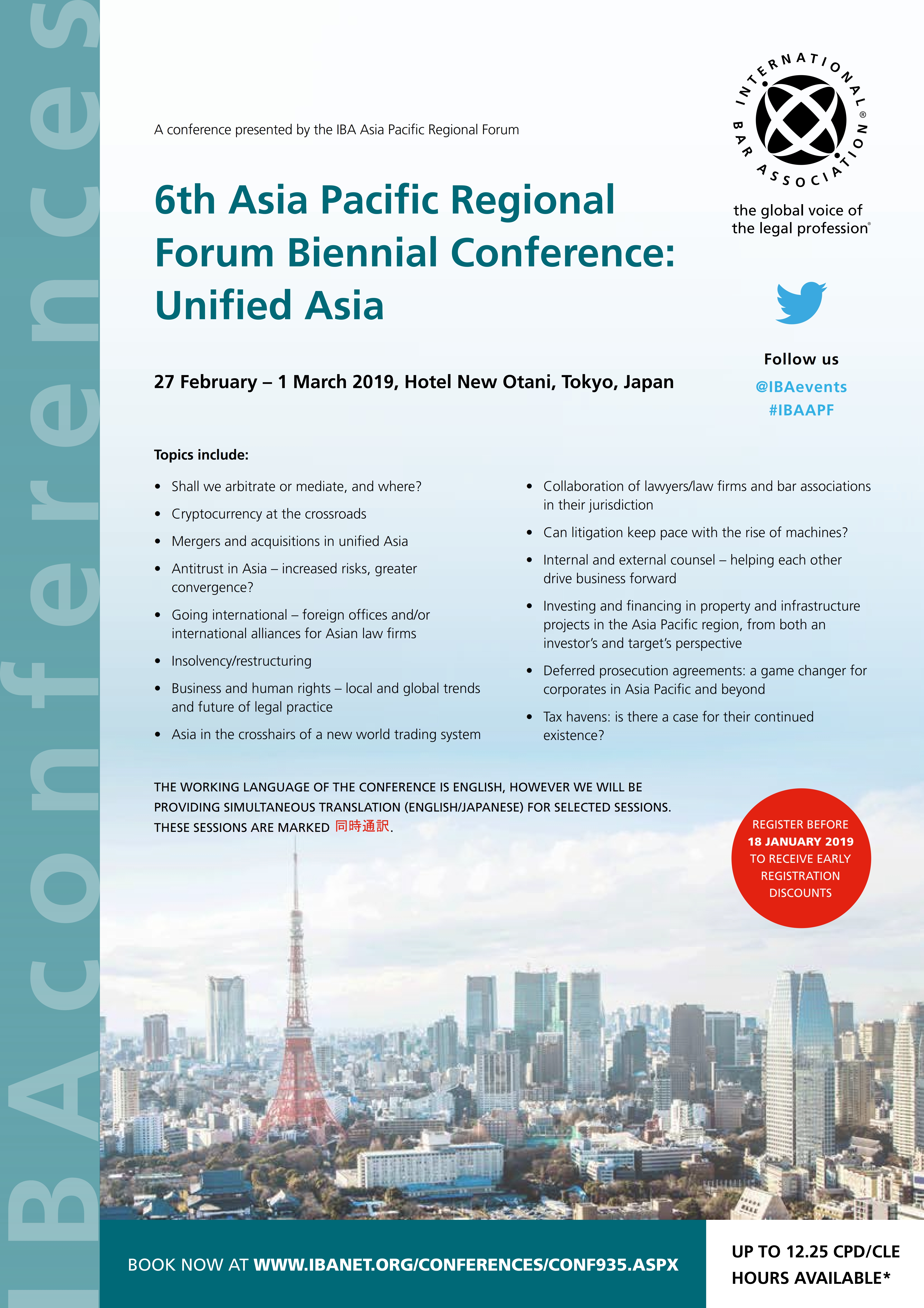 IBA CONFERENCE 6th Asia Pacific Regional Forum Biennial Conference: Unified Asia